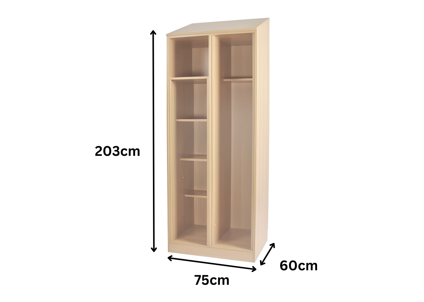 Optional Features: Sloping tops and/or sloping door tops on wardrobes can be added for enhanced safety.
