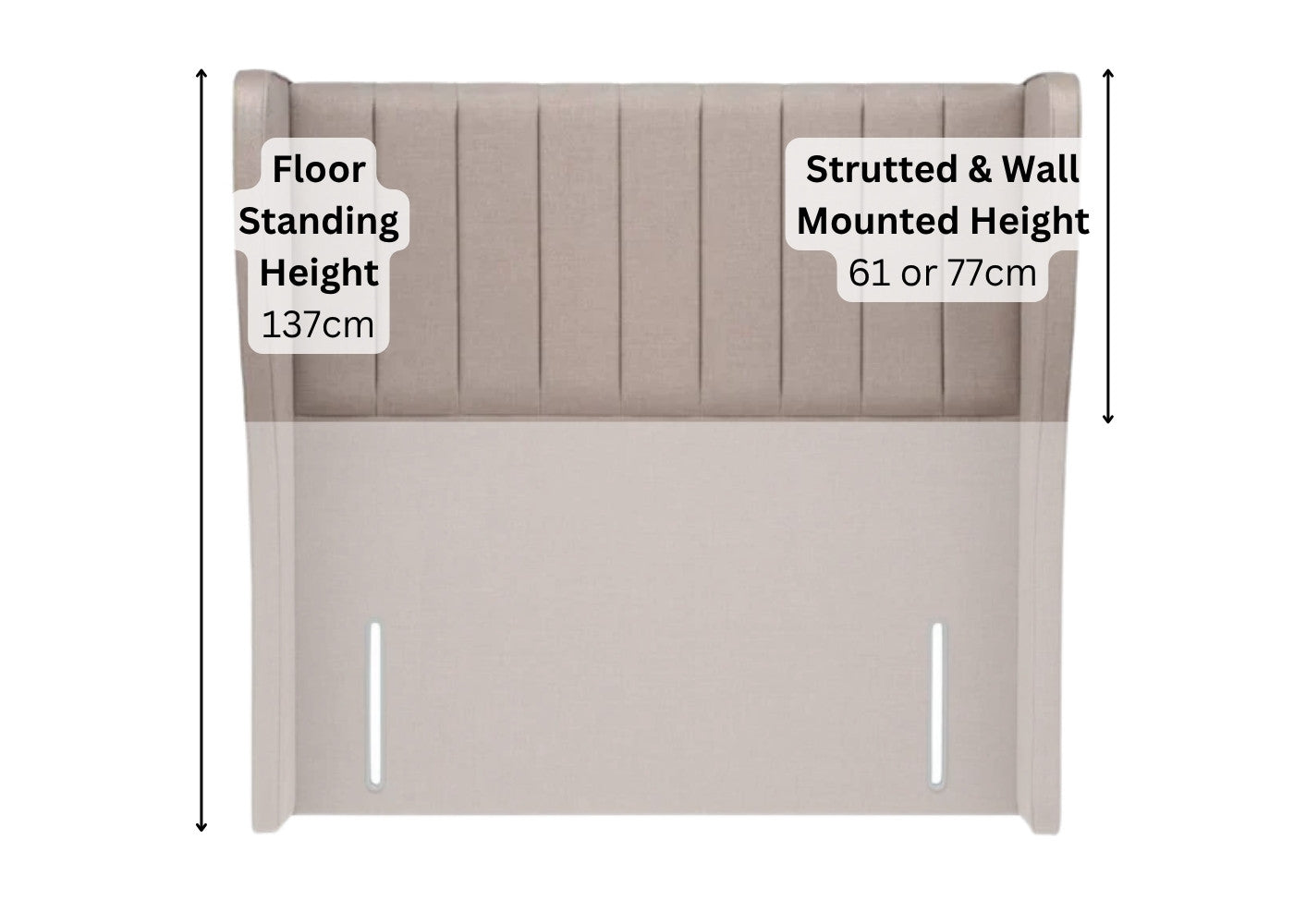 The floor-standing version stands at 132 cm high. Strutted or wall-mounted options are available in heights of 61 cm, 71 cm, or 102 cm, with a 10 cm pillowboard included.