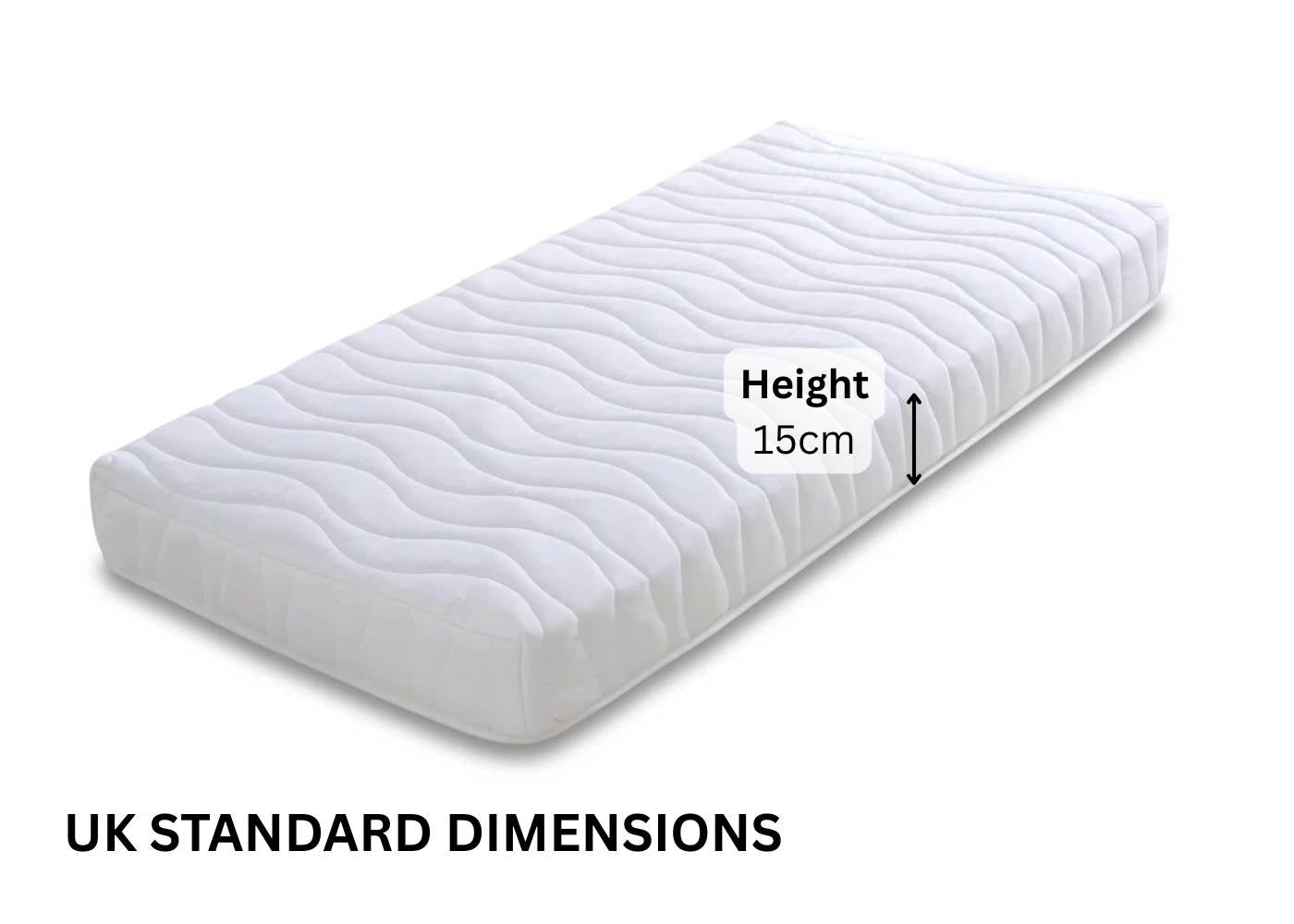 The Bunk Bed Memory Mattress features a solid foam core topped with 2cm of high-density memory foam, providing excellent support and durability. It has a firm tension and a depth of 15 cm, making it ideal for bunk beds. The mattress is covered with a sanitised fabric that is hypoallergenic and offers anti-dust mite properties. Additionally, it requires no turning, simplifying maintenance.