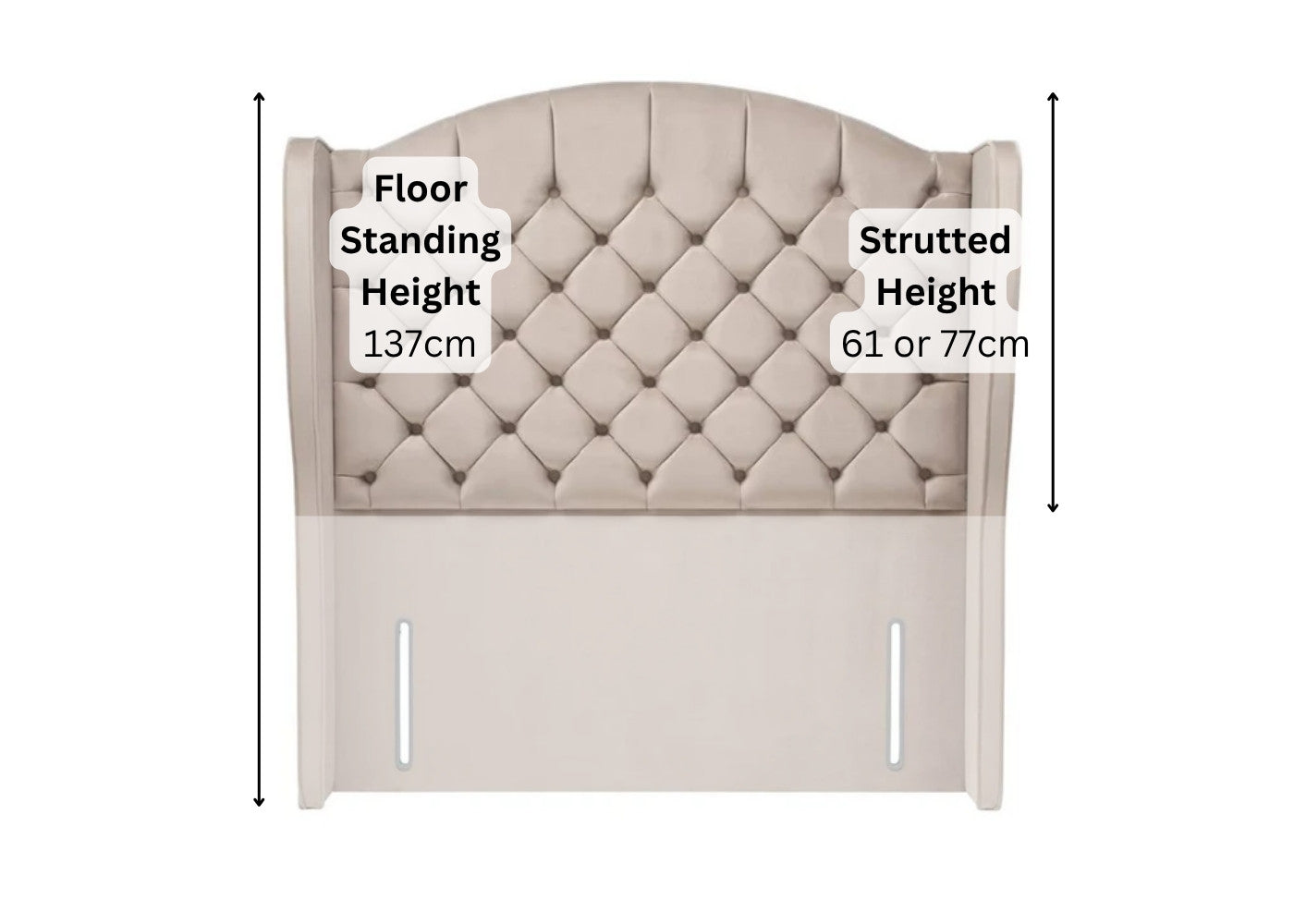 The Alladale Winged Headboard boasts a unique curved top with buttoned styling, adding a touch of elegance to any bedroom. Its winged design not only enhances aesthetic appeal but also provides a cozy, enclosed feel.