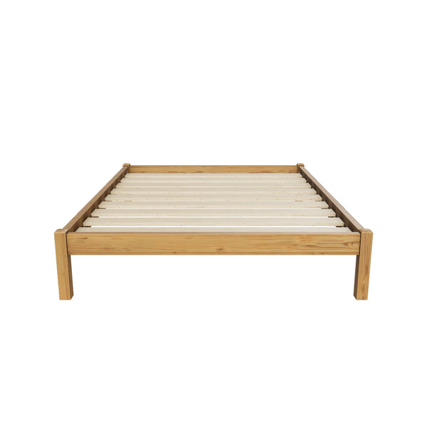 The Lille Pine Bed is constructed from robust Scandinavian solid pine and features extra-thick slats (28mm deep x 115mm wide). It is designed to support up to 25 stone (159 kg) per sleeper, providing a sturdy and reliable sleeping solution.