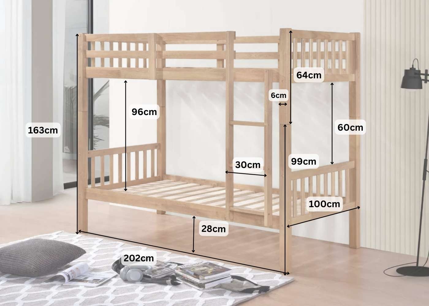 - Do not place a bunk bed near a window or a light fitting.