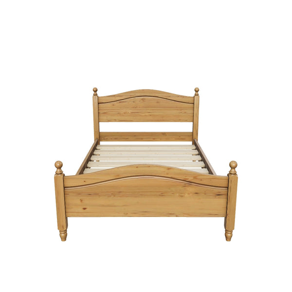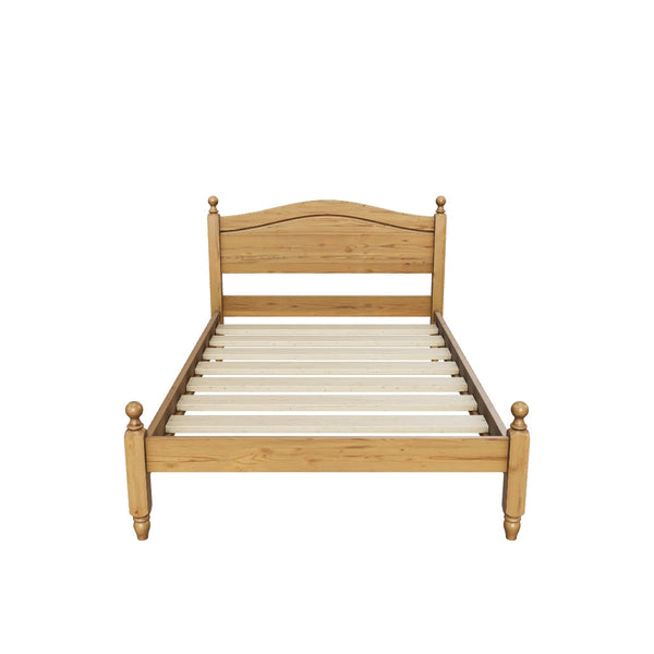 The Dusseldorf Pine Bed is constructed from robust Scandinavian solid pine and features extra-thick slats (28mm deep x 115mm wide). It is designed to support up to 25 stone (159 kg) per sleeper, providing a sturdy and reliable sleeping solution.