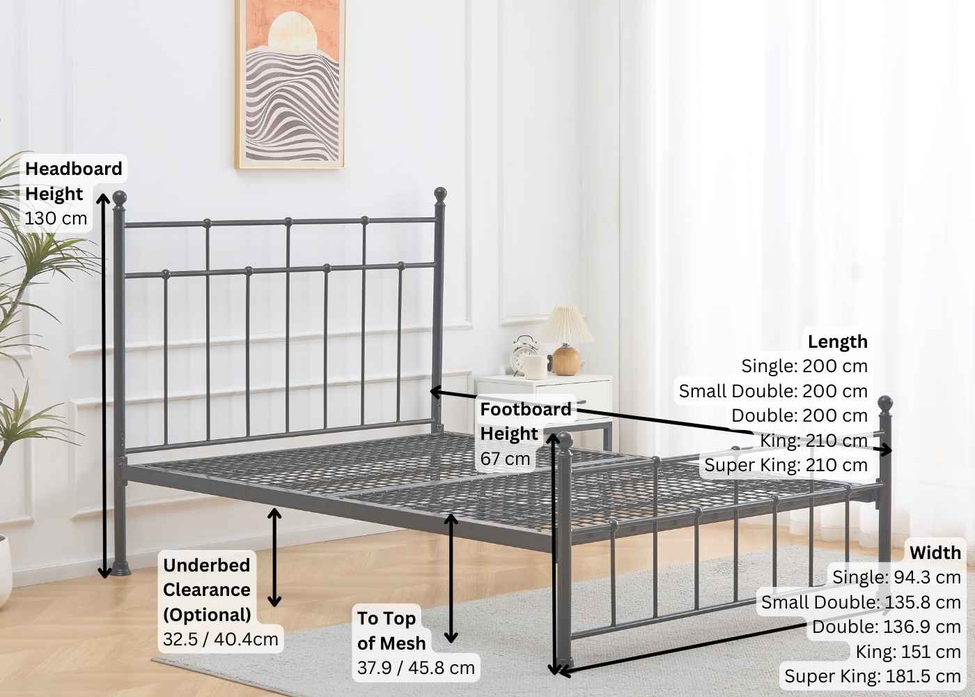 • Part of our Metal Bed Frame Collection – Available in single, small double, double, king, and super king.