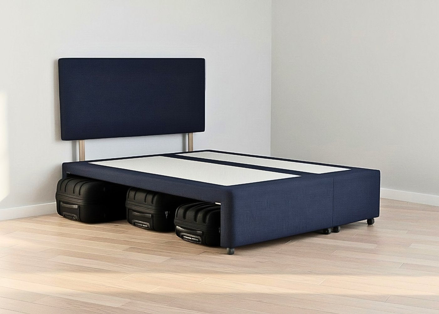 Suitcase Storage Divan Base in Navy Finish, with Strutted Hermia Headboard